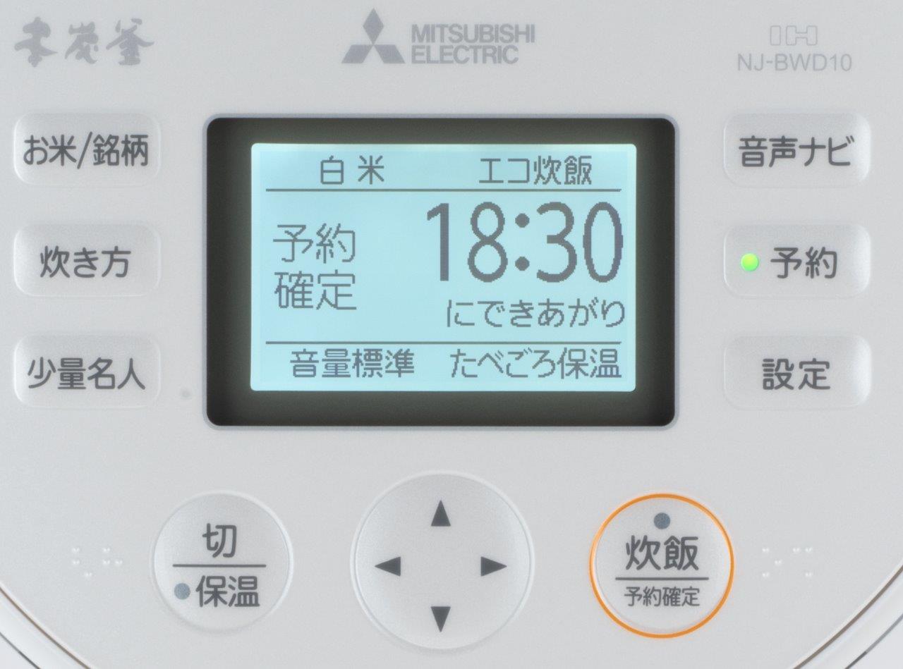 炊飯予約 炊き上がり時刻設定式(10分単位・予約メモリー2)&かんたん予約(最大12時間後)