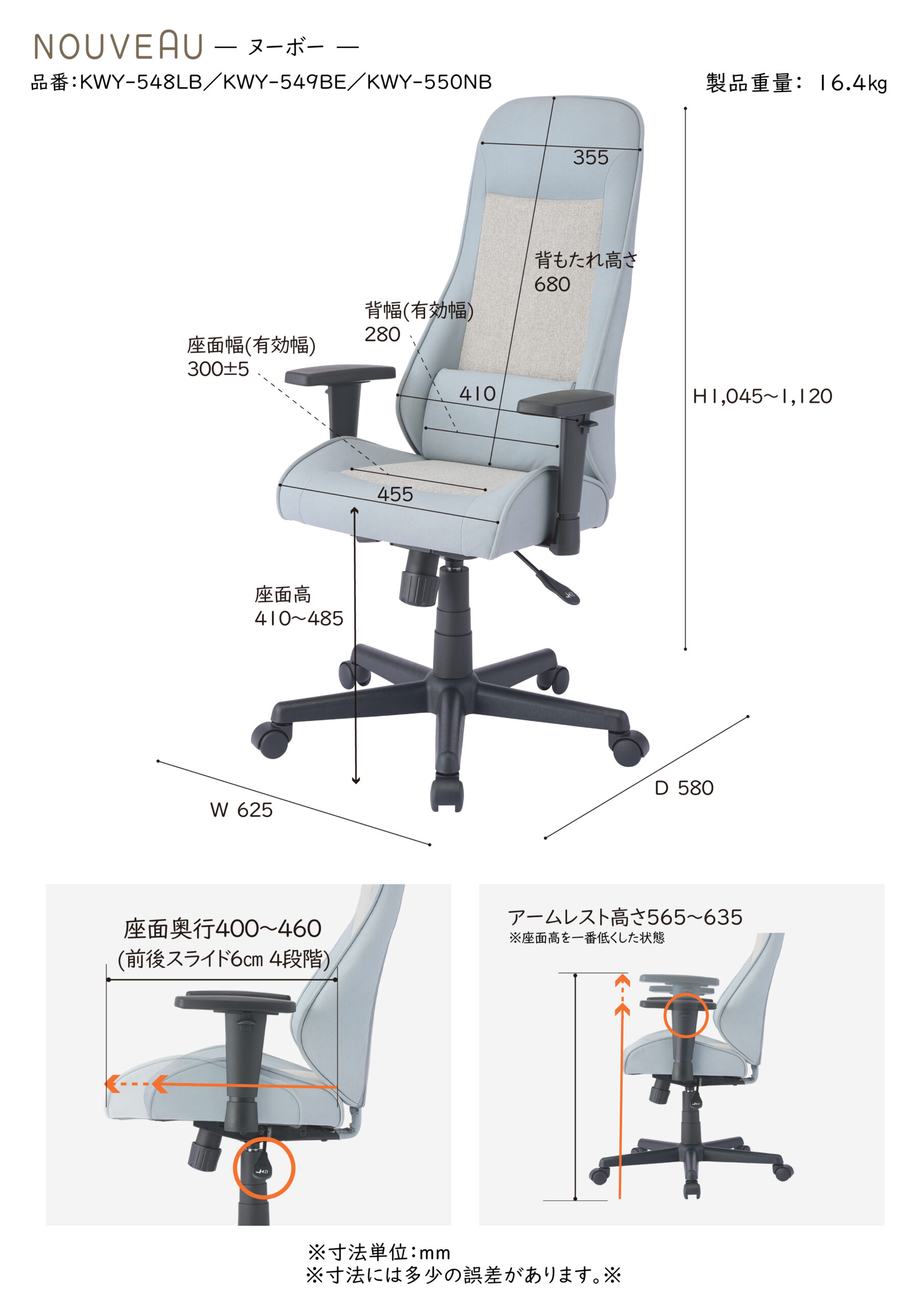 • 回転チェア [W625×D580×H1045〜1120mm] NOUVEAU ヌーボーシリーズ ライトブルー KWY-548 LB_7