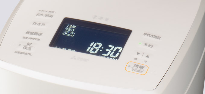 炊飯予約 炊き上がり時刻設定式(10分単位・予約メモリー2)&かんたん予約(2〜12時間後)