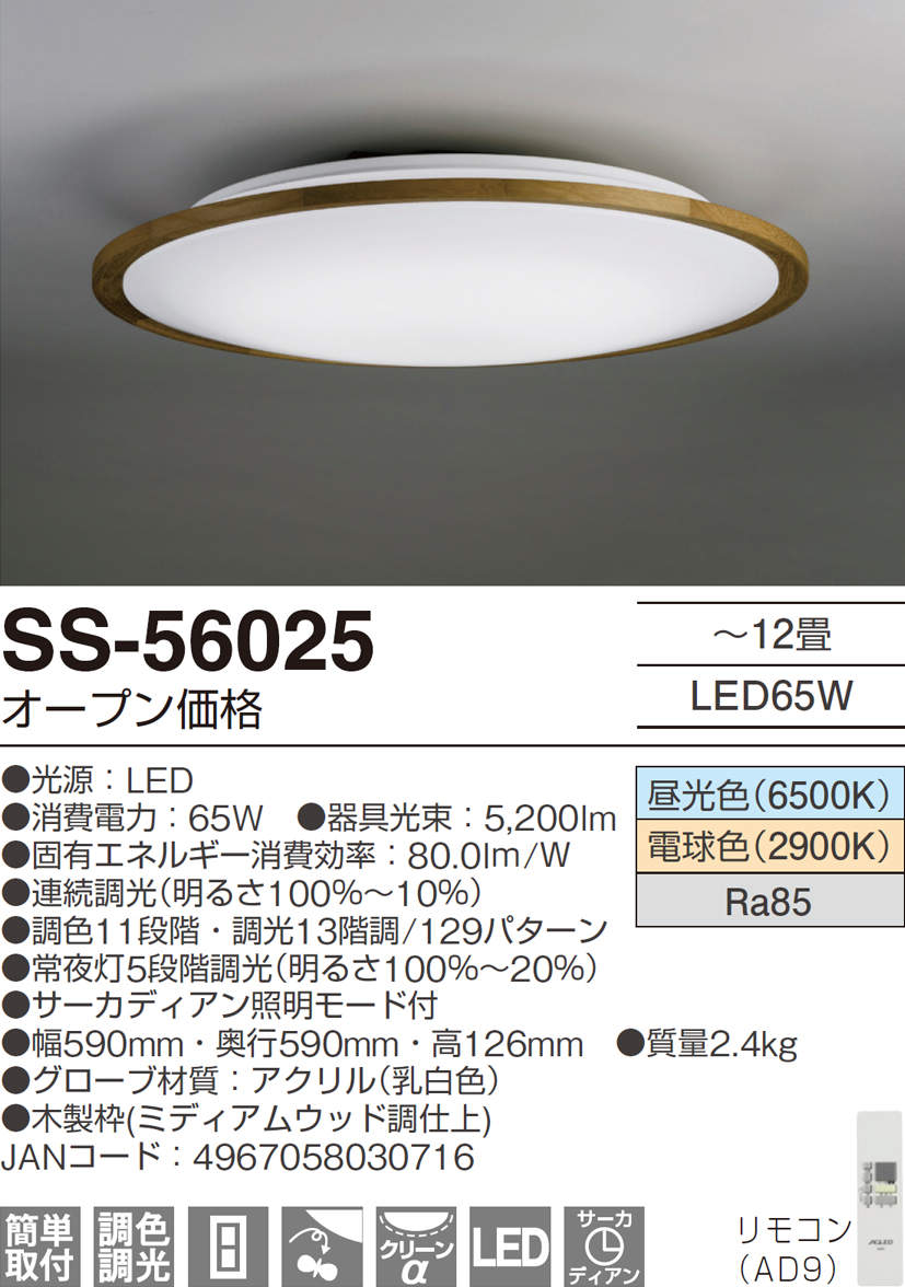 LEDシーリングライト AGLED ホワイト SS-56025 [12畳 /昼光色〜電球色 /リモコン付属]
