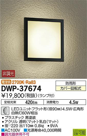 商品名 DWP-37674 玄関照明 黒塗装 [電球色 /LED /防雨型]