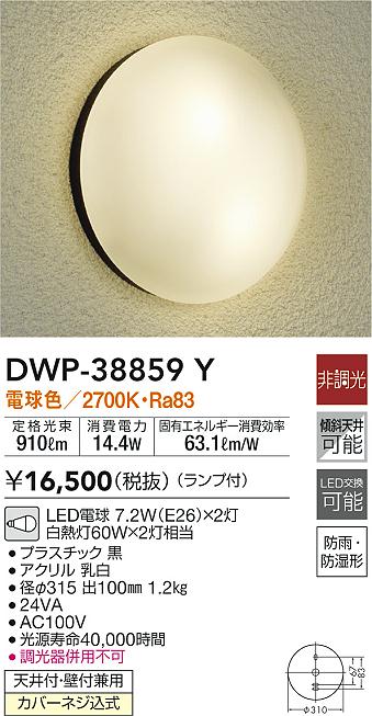 商品名 DWP-38859Y 玄関照明 黒 [電球色 /LED /防雨型 /要電気工事]