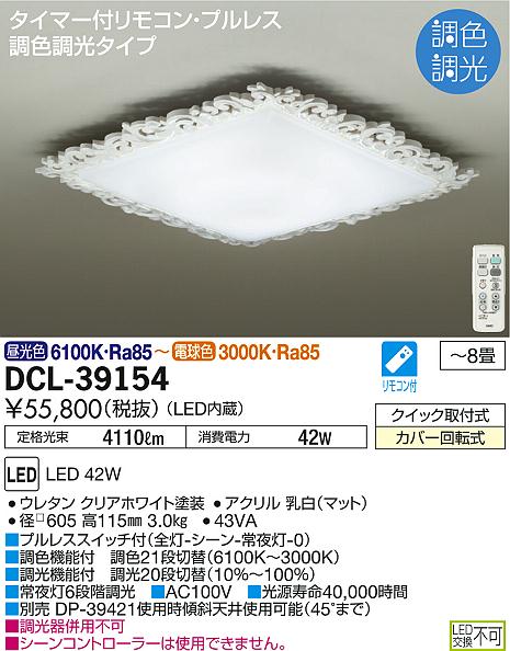 LEDシーリングライト クリアホワイト DCL-39154 [8畳 /昼光色〜電球色 /リモコン付属]