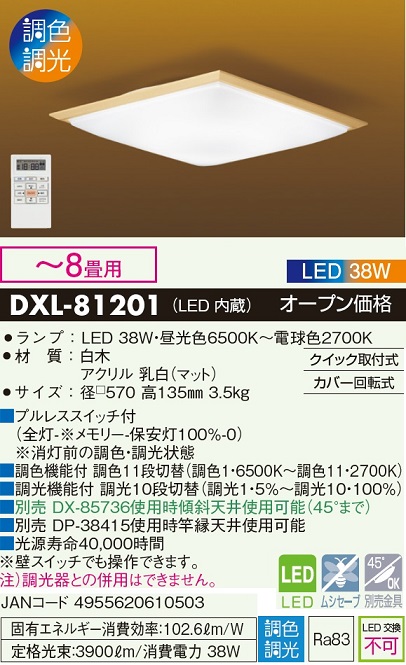 商品名 LEDシーリングライト DXL-81201 [8畳 /昼光色〜電球色 /リモコン付属]