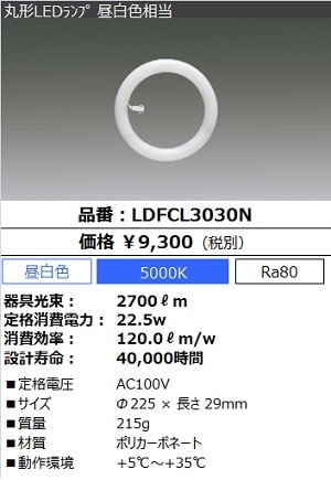 商品名 丸形LEDランプ LDFCL3030N [30形 /昼白色 /1本]