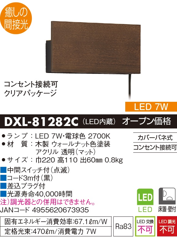 DXL-81282C ブラケットライト ウォールナット色塗装 [電球色 /LED /要電気工事]