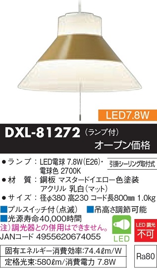 商品名 DXL-81272 LEDペンダントライト [電球色]