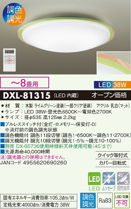 LEDシーリングライト DXL-81315 [8畳 /昼光色〜電球色 /リモコン付属]