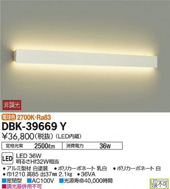 商品名 DBK-39669Y ブラケットライト 白塗装 [電球色 /LED]