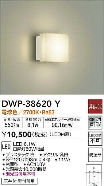 商品名 DWP-38620Y ブラケットライト 白 [電球色 /LED /防湿型 /要電気工事]