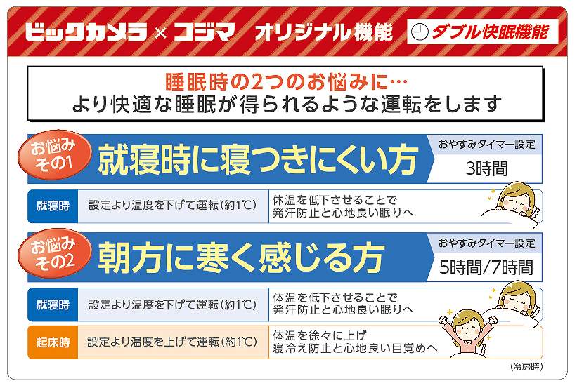 [オリジナル機能]「ダブル快眠」機能が、深い眠りとすっきりとした目覚めをサポート
