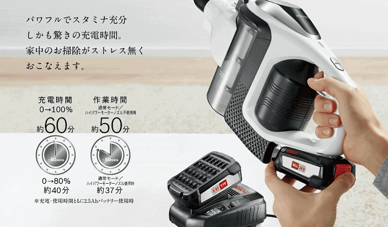 パワーソース パワフルでスタミナ充分、しかも驚きの充電時間。家中のお掃除がストレス無くおこなえます。