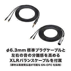 Hi-Fiオーディオに接続できる着脱式バランスケーブル(3.0m/XLR端子)を付属。線材は、高音質伝送が可能な6N-OFCを採用しています。