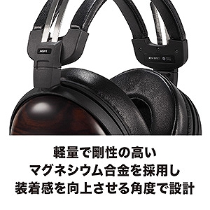 アームには、軽量で剛性の高いマグネシウム合金を採用。密閉型の黒檀ハウジングとイヤパッドに対し、最適なアームの取り付け角度を設計して、装着感を向上させています。音漏れを防止し、密閉性を高めることですべての音を聴くことができます。