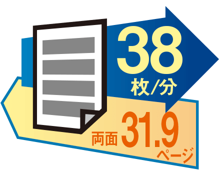 高性能エンジンを搭載し、連続出力38枚/分※の高速印刷を実現。さらに、31.9ページ/分※の自動両面印刷機能を標準装備しました。用紙コストを節約したり紙資源を有効活用したりすることができます。