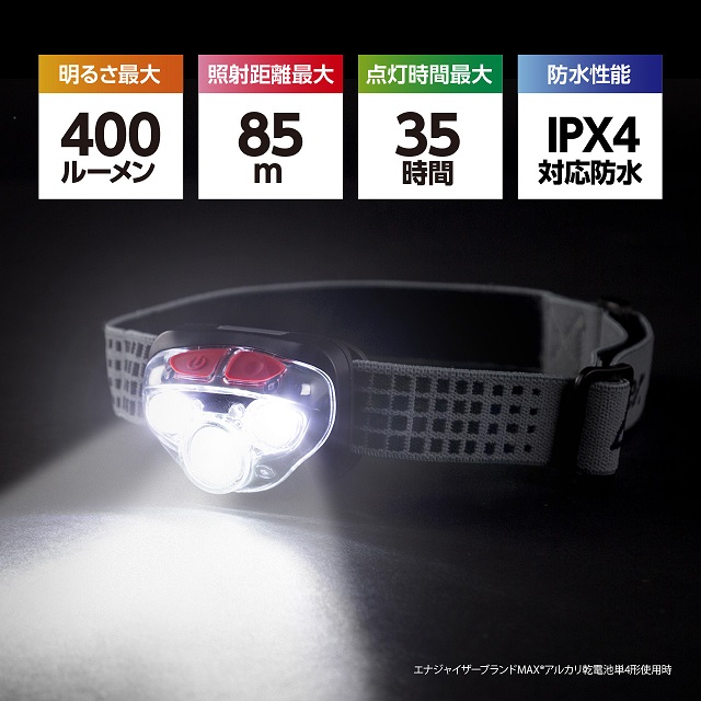 商品名 エナジャイザー ヴィジョンHD+ ヘッドライト 400lm HDD323 [LED /単4乾電池×3 /防水]