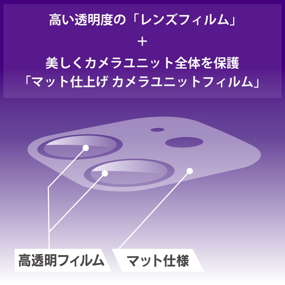 カメラレンズ全面を守る、高透明レンズフィルムとクリア仕上げのカメラユニットフィルムのセットです。