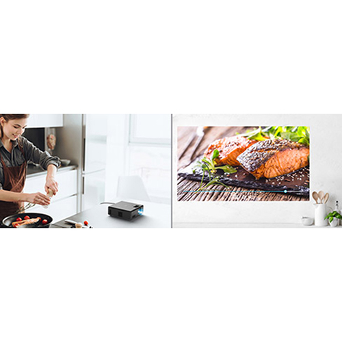 コンパクトながら1,000lmの明るさで、部屋を真っ暗にしなくても明るい高画質映像を映し出します。また、レーザー光源を使っているので2,500,000:1の高コントラストを実現。明るさ以上の高画質を体感できます。