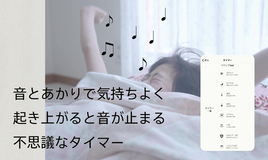 起床時間や就寝時には、照明と音で次の行動を促します。