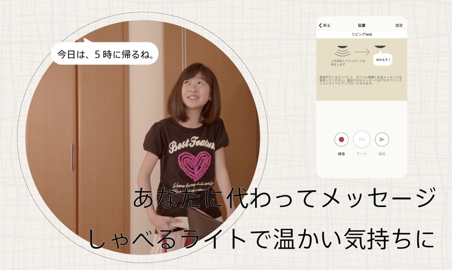 アプリにボイスメッセージを録音すると、マルチファンクションライトが人を感知した時にメッセージを再生してくれます。