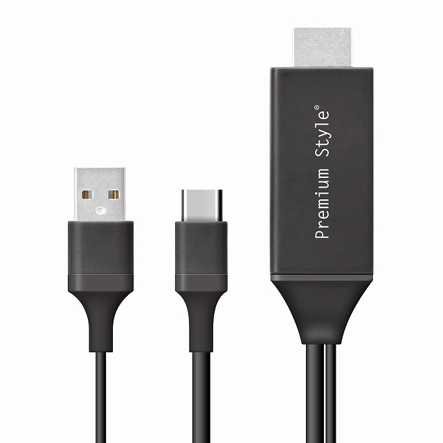 • USB-C ⇔ HDMI+USB-Aオス(給電用)ケーブル [映像 /3m /4K対応] ブラック PG-UCTV3MBK_2