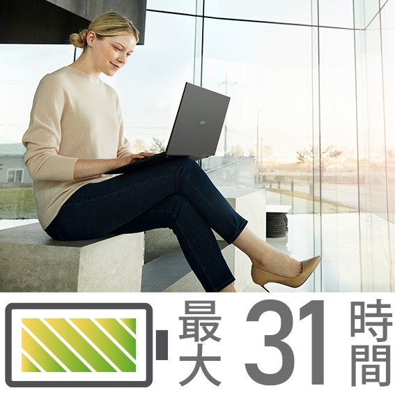 ※記載されている駆動時間はJEITAバッテリ動作時間測定法(Ver.2.0)による測定結果です。使用する環境、使用状況、周辺機器の接続状況等に応じて大きく変わります。